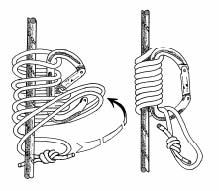 -Retuerce la cuerda formando rizos que dificultan el descenso.