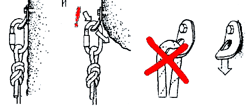 -Colocar los mosquetones de forma que el cierre no toque la pared y con el seguro hacia abajo.
